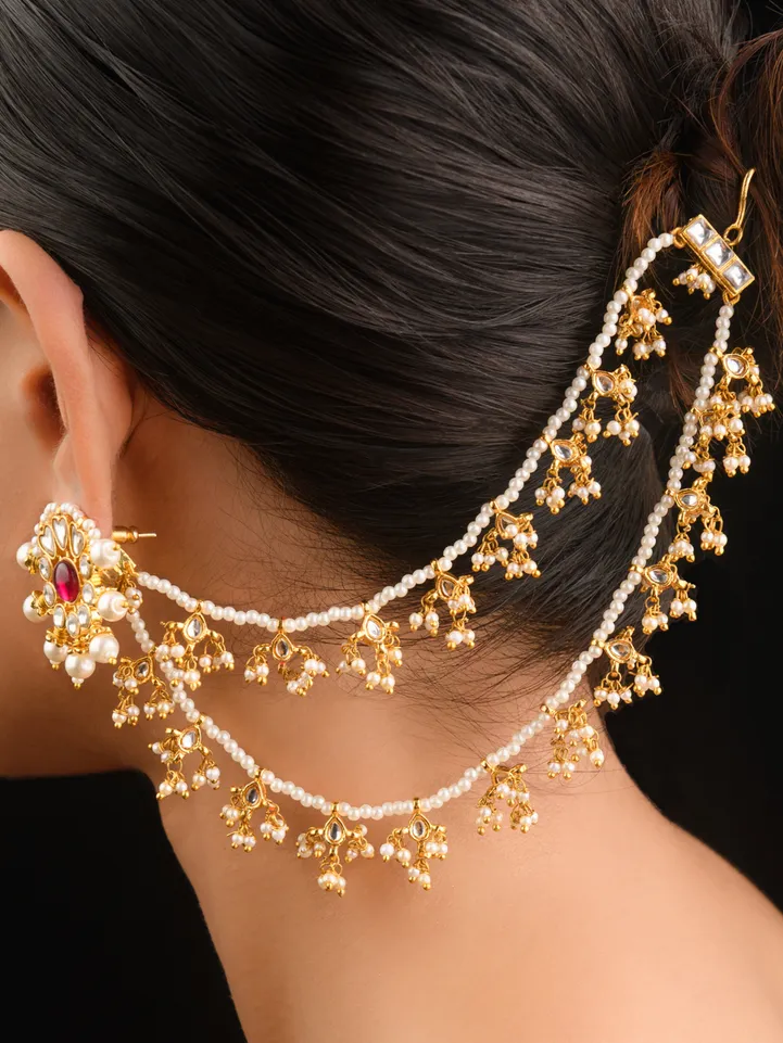 Step into the world of refined elegance with Gold & White Biya Kaan Saharas—a timeless blend of heritage craftsmanship and modern sophistication.