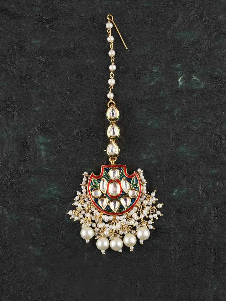 This Kundan and meenakari maang tikka comes with a lot of pearls and is a perfect traditional ethnic piece. All products are handcrafted and made to order to ensure that you get exquisite workmanship with each piece you purchase. Please click on the whatsapp icon if you have any queries regarding the product/delivery timelines